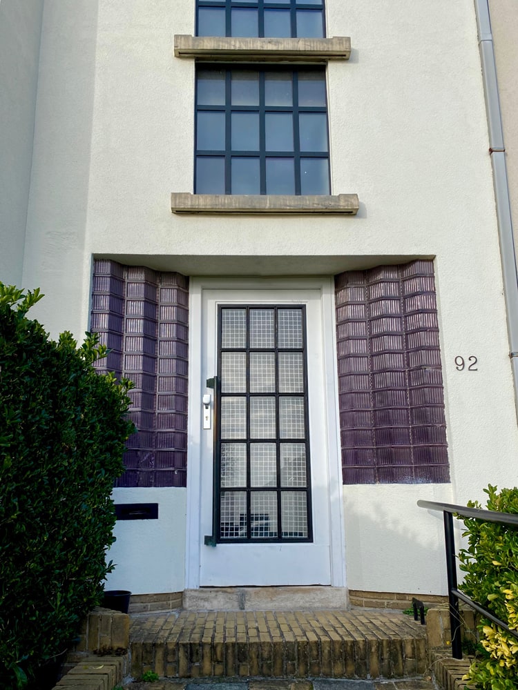 Beautiful classic modernist facade, composed of a left span with a spur oriel window which makes all its specificity, and a right span with the entrance door topped by a bay window which illuminates the stairwell.